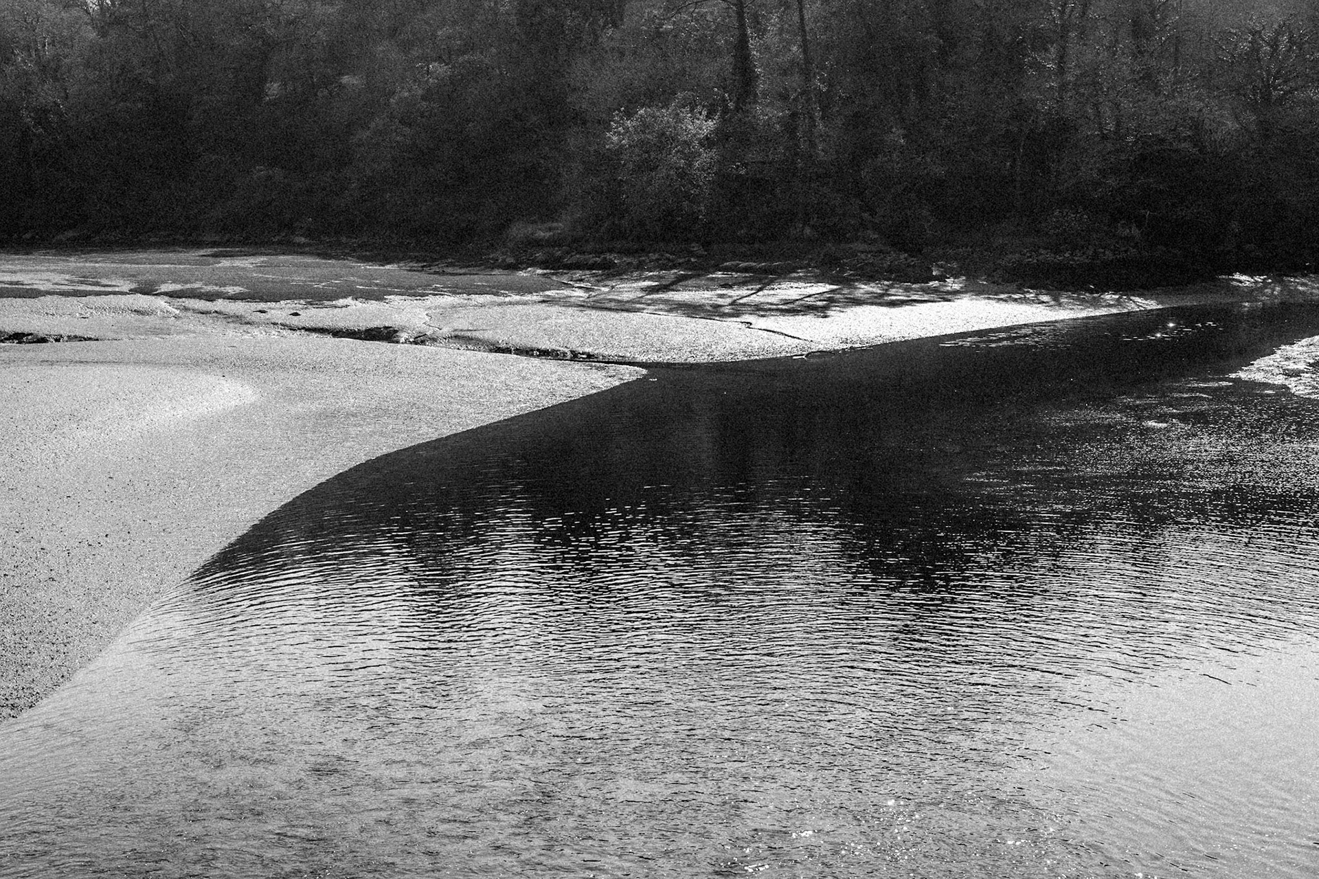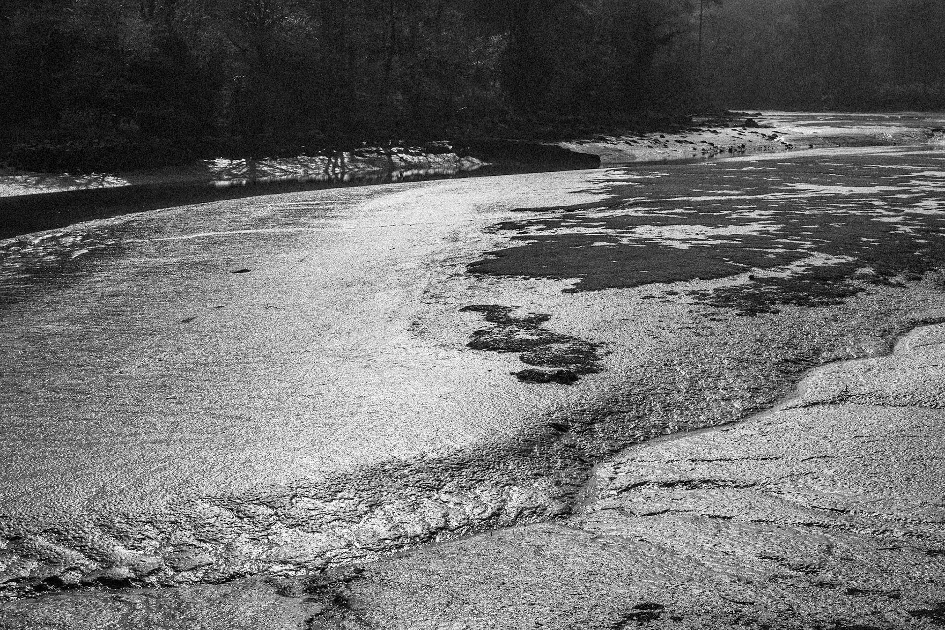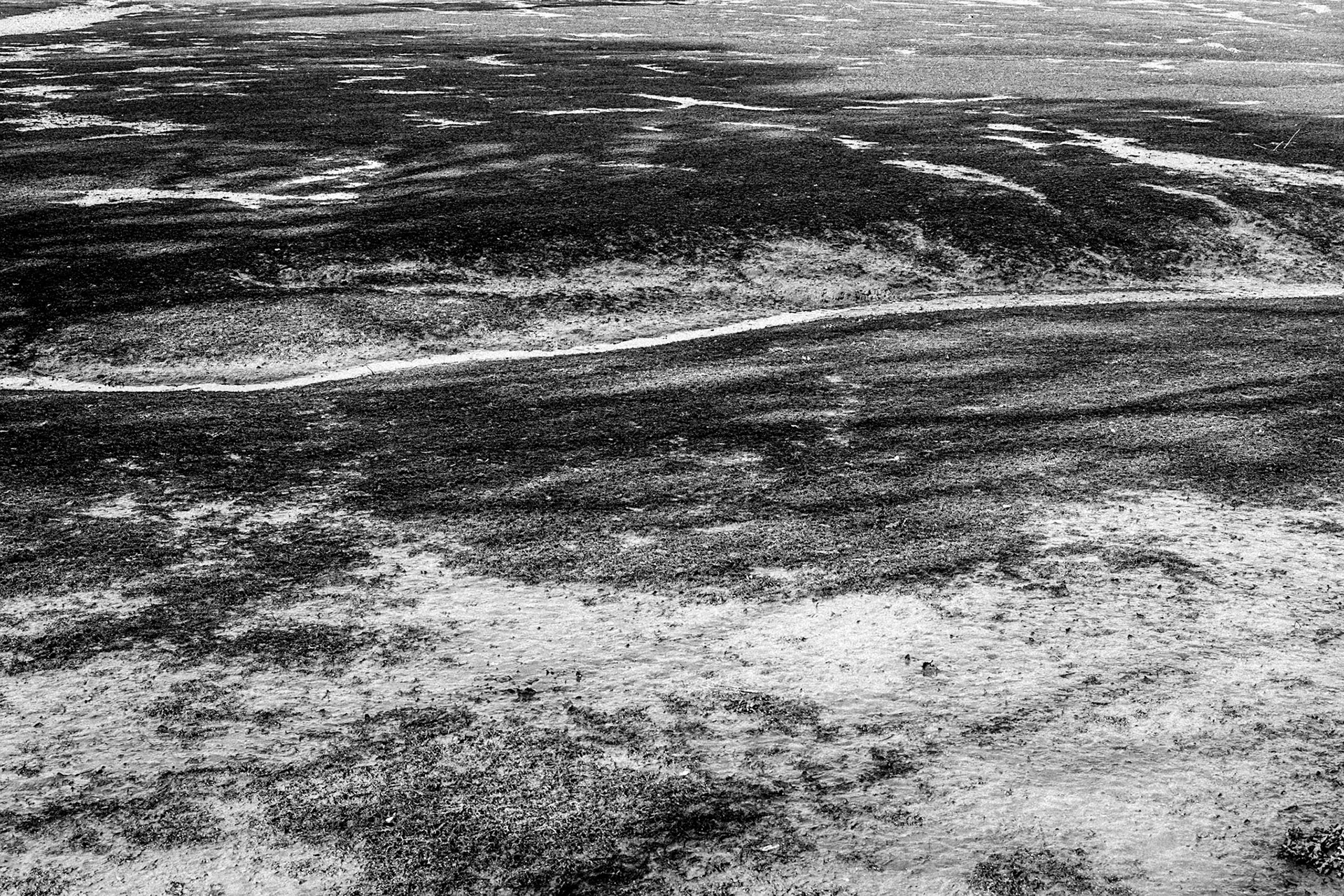 La ria de la rivière belon à marée basse, en Bretagne Sud. Un mince ruisseau qui sera bientôt recouvert par la mer, des courbes, des lumières... On pense à Prévert, "Démons et merveilles, vents et marées, au loin déjà la mer s'est retirée..."